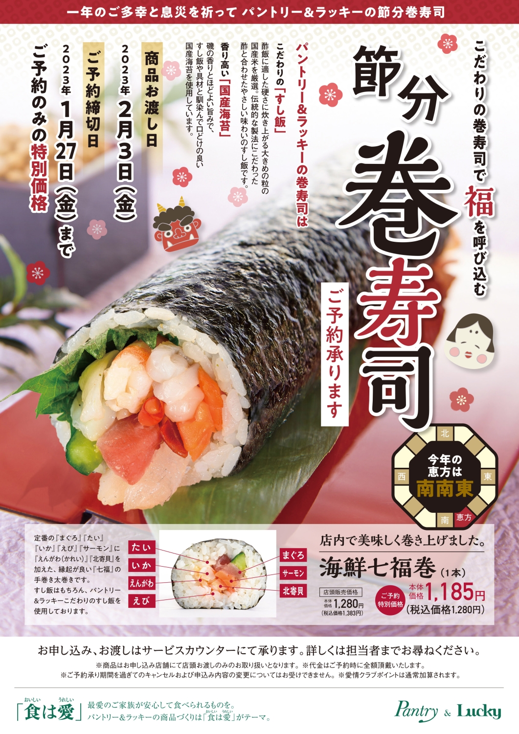 2023年はパントリー・ラッキーの節分巻寿司で『福』を呼び込みましょう♪